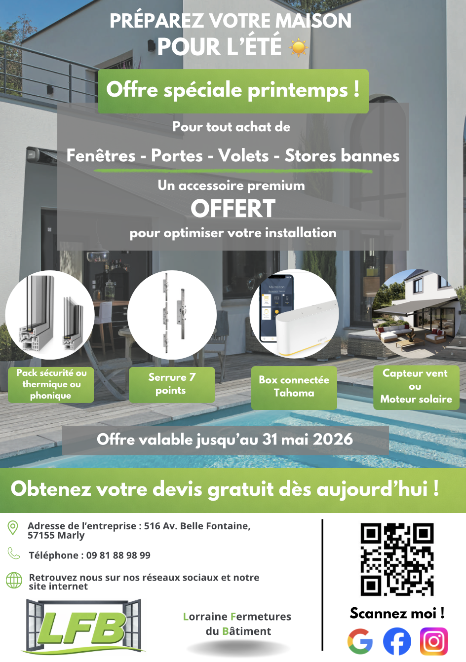 Pour tout achat de Fenêtres - Portes - Volets - Stores bannes, un accessoire premium OFFERT